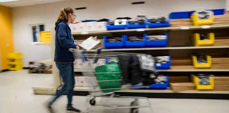 Fluorescent lights hum overhead as teachers push metal carts down long aisles of school supplies, calculating what their students need most.